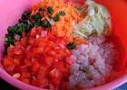 Dzięki Iwett :) Tak...ok 700g mielonych piersi z kurczaka lub indyka,posiekany szczypior i pół czerwonej papryki,starta marchew i cukinia (odciśnięta),3 jajka,trochę śmietany kremówki,tarta bułka(na oko),sól,pieprz czarny i ziołowy