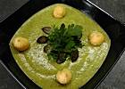 U mnie dzisiaj króluje kolor zielony...zupa krem z zielonych warzyw,nieco pikantna,podana z groszkiem ptysiowym,uprażonymi pestkami dyni i posiekaną natką