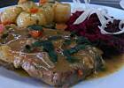 Wczoraj ostatni u nas obiad z francuskimi gośćmi....... Pieczone / Pieczonki z wkładką zamarynowanego mięsa golonki (golonka obrana z kości, skóry i tłuszczu)