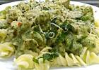 Makaron spaghetti ze szpinakiem,szynką dojrzewającą i sosem serowo-pieczarkowo-czosnkowym :)