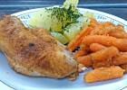 Kurczak w sosie maślanym z młodą marchewką,nutą czosnku i natki pietruszki...karmelizowana młoda marchewka z odrobiną miodu i octu balsamicznego...odsmażone kopytka...mizeria