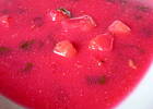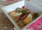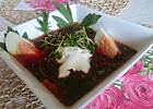 botwinka z tłuczonymi ziemniakami,prażoną cebulką i jajkiem.