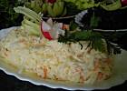 Rosół (z mięs wielu) z makaronem, kotlety sojowe a,la schabowy i sałata ze śmietaną.