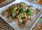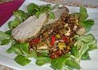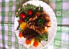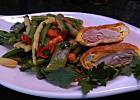 Ja dzisiaj dwa dania, a co...pierwsze błyskawiczne , żeby zaspokoić głód - sałatka z mięsem. Drugie - rolada indycza z ziołami i szpinak przesmażony z czosnkiem i parmezanem.