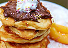 Placuszki biszkoptowe z brzoskwiniami, jabłkami, nutellą i bitą śmietaną.