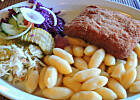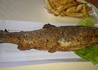 Niby zwykła smażalnia ryb (z własnego stawu), a rybka super - hiper - odlotowa. Frytki pyyyycha, przy mnie, z wybranego ziemniaka, robione i małosolny ,na wpól-ukiszony ( też sama sobie wybrałam).