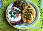 Zwyczajny obiadek, jajka sadzone na boczku, puree ziemniaczano-marchewkowe, młoda kapustka trochę inaczej, bo z dodatkiem świeżego lubczyku i musztardy... :)