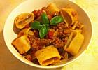 Makaron Calamari z sosem mięsno-paprykowo-pomidorowym i duszona młoda kapustka :)