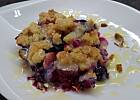 ...owoce- jabłka,nektarynki,paraguayo, borówki amerykańskie, czerwona porzeczka-połączone z miodem i odrobiną cynamonu...kruszonka na maśle z dodatkiem odrobiny aromatu śmietankowego...sos zrobiony na bazie śmietany kremówki z dodatkiem cukru i esencji waniliowej -zredukowany do konsystencji syropu