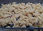 crumble z pysznym, słodkim sosem waniliowym (idealny do kwaskowatych owoców) i pokruszonymi migdałami