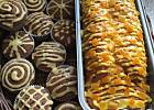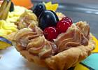 kruche ciasto, jabłka, rodzynki, migdały, czekolada ... lody bakaliowe, kawa ....