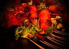 Troszkę kalorii na ten mróz ... zapiekany boczek ze śliwką suszoną,na miksie sałat ... wszystko skropione sokiem z cytrynydevilish.