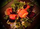 Z serii LUBIĘ TO ... szaszłyki z łososia z ananasem i suszonymi śliwkami na miksie sałat ... wszystko skropione sokiem z cytryny :)