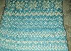 Moj corek podziebiony a raczej pociagajacy, postanowilam wiec zrobic dla niej krotki komin z dwoch kolorow wloczek welny, czyli taki zakardowy. Nie umiem tego robic, ale bardzo chce, tymbardziej ze nadarzyla sie okazja, ze pociaga nosem. Komin ma byc blekitno - kremowy ( albo inaczej, bo napisane jest na wloczce, ze to nie blekitny, tylko kolor morski). Pierwsze proby zrobione, idzie troche ciezko, bo to trzeba na jednym palcu miec dwie nitki, a nie jedna, jak normalnie, trzeba odpowiednie napiecie zastosowac tych nitek, ale jak to sie mowi, do odwaznych swiat nalezy, albo jak nie teraz, to kiedy?