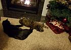 Kocia impreza przy kominku, proszę bardzo. Futra uwielbiają wygrzewanie.