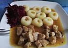 Wczoraj na obiad mielismy gulasz z kluskami slaskimi i wlasnymi buraczkami - obiad byl przepyszny