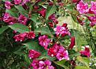 Na dwu pierwszych moich zdjęciach jest krzewuszka, inaczej wajgela. Mam jeszcze drugą kwitnie nieco później. Ale napiszę jak tą właśnie sprowadziłam do mojego ogrodu. Otóż pojechałam kiedyś wiosną do sklepu z różnymi krzewami ozdobnymi /i chyba nie tylko, ale nie pamiętam, bo było to z 20-25 lat temu/ z moim synem, młodzieńcem wówczas. Nie pamiętam co tam kupowałam, ale sowi wpadły w oko krzewuszki i zaczął mnie namawiać. Powiedziałam dobrze, weźmiemy jeszcze taki krzew. A on uparł się na ten właśnie egzemplarz, bo... nie był podobny do niczego... mały, gałązki liche, do tego krzywy, pokraczny wprost. Protestowałam, że co to jest, że to krzywe, prawie leżące na gruncie, a on na to, że musimy go kupić, bo jest tak brzydki, że z pewnością nikt go nie zechce i biedak przepadnie. Pomyślałam, no dobra, najwyżej na drugi ro go wyrzucę.