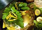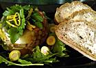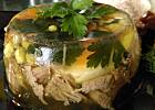 Galaretka z indyka...na sałacie,z oliwkami i marynowaną papryczką chili :)