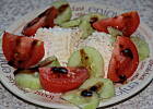 Wędzony ser w towarzystwie ogórka i pomidora:))