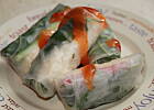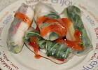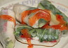 Spring Rollsy z serem białym, wędzonym, ogórkiem, papryką i rukolą polane moim sosem chili:))