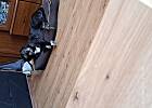 Pierwszy nasz na mebel na uwięzi. W tym miejscu, gdzie ma stać podłoga krzywa, nie widać,  dopiero rękoma, jak sprawdzał, czemu nie trzyma pionu.