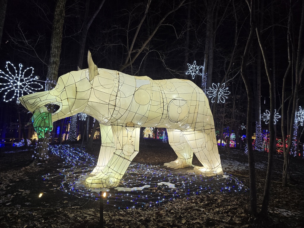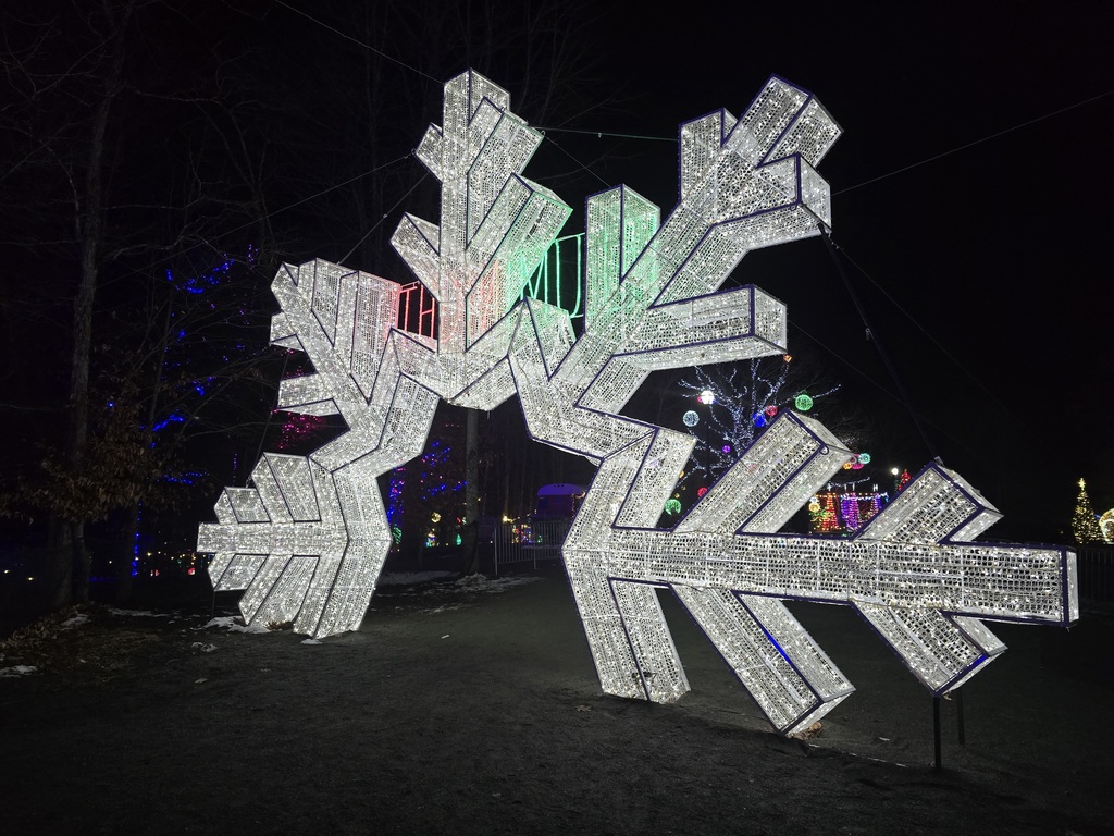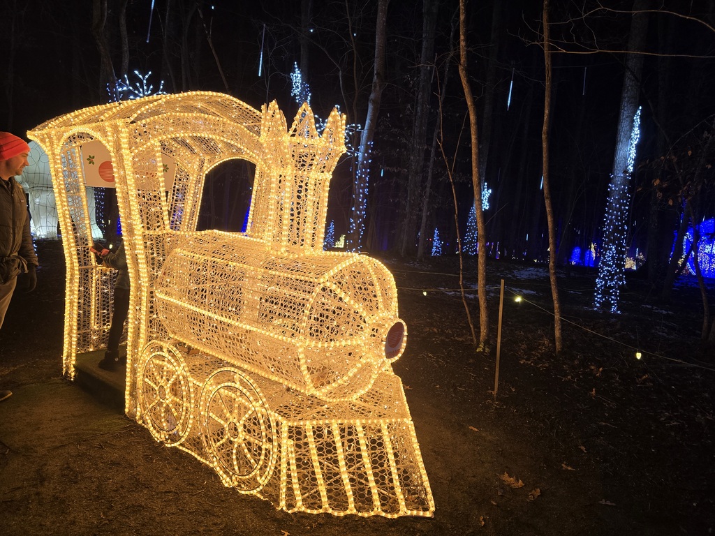 A na wieczór Iluminights, przepiękne, jakieś 45 minut spaceru, myślę, że można dłużej, ale trzeba było podążać za rozekscytowanymi dziećmi, które ledwie się mogły zatrzymać na chwilę. Ekspozycje zmianą świateł sprawiały, że czuło się ruch. Była np wiewiórka, w kilku czy nawet kilkunastu pozycjach - wypinająca się na drzewo, schodząca z niego, a na końcu siedząca z żołędziem w łapkach, każda pozycja podświetlana osobno. I wszystko było takie lokalne, połączone z tym co dookoła. Będzie jeszcze w weekend po nowym roku, pewnie z mężem się wybierzemy. Będzie na pewno bez tłumów jak wczoraj. Gdy moment by wystarczył, że dzieci się pogubia , gdy pójdą za inną kurtką.