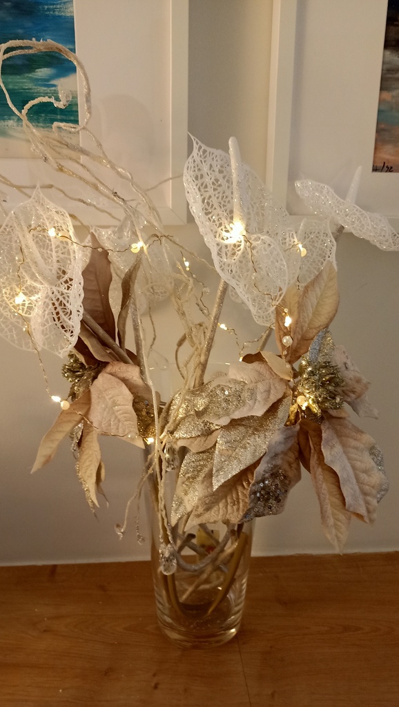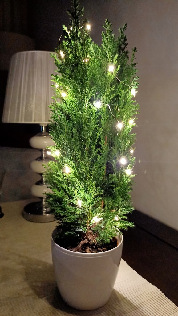 Wczoraj miałam wizytę lekarską kontrolną (wszystko OK) a w pracy spore zamieszanie. Jak wróciłam do domu, to podgrzałam obiad i usiadłam w kompletnej ciszy, przy swojej małej, rozświetlonej choineczce. Poczułam się tak błogo, tak spokojnie i tak mi było dobrze... Czasami taka cisza jest jak "lekarstwo". Jej, jak ja tego potrzebowałam. Aż zaczęłam się do siebie uśmiechać... To był dobry dzień.