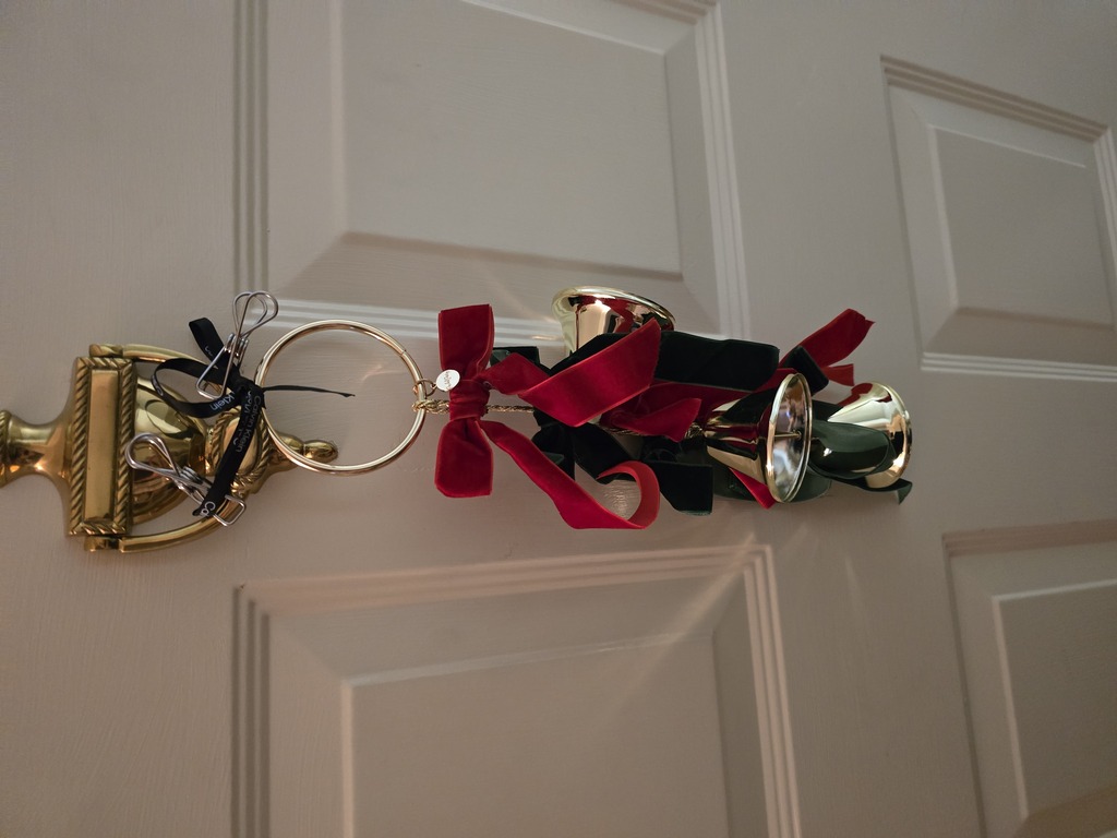 Poza tym kubek zmieniający kolor, też z motywem z tego filmu. I dekorację na drzwi, dzwoneczki z kokardkami.