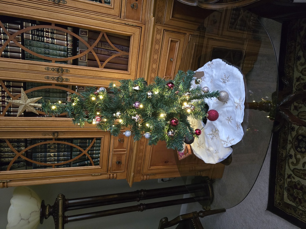 I choinka już do końca udekorowana. Szklany stół przestał mnie denerwować.