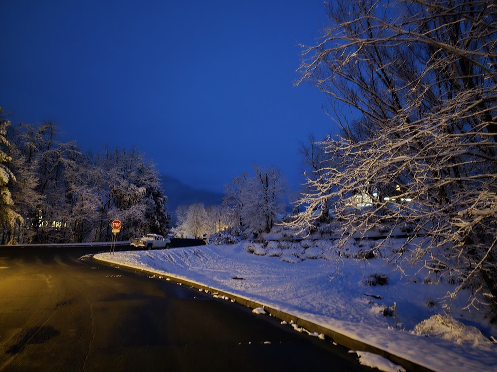 Zimowo to było, ale szybko się skończyło. Stopił się. Ale zaraz zaczyna się nowa dostawa, tym razem dużo większa, ma padać do późna w nocy. Z pracy wzięłam mojego służbowego vana wczoraj, bo jeep nie miałby szansy.