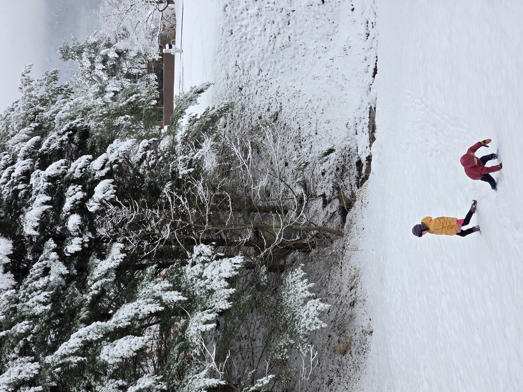 Dzieciaki miały radochę ze śniegu. Starsze prowadziły wojnę śniegowa z Malutką przez szybę, jak to fajnie wyglądało. Ona sama nie jest przekonana do końca do śniegu, ale też nie panikuje.