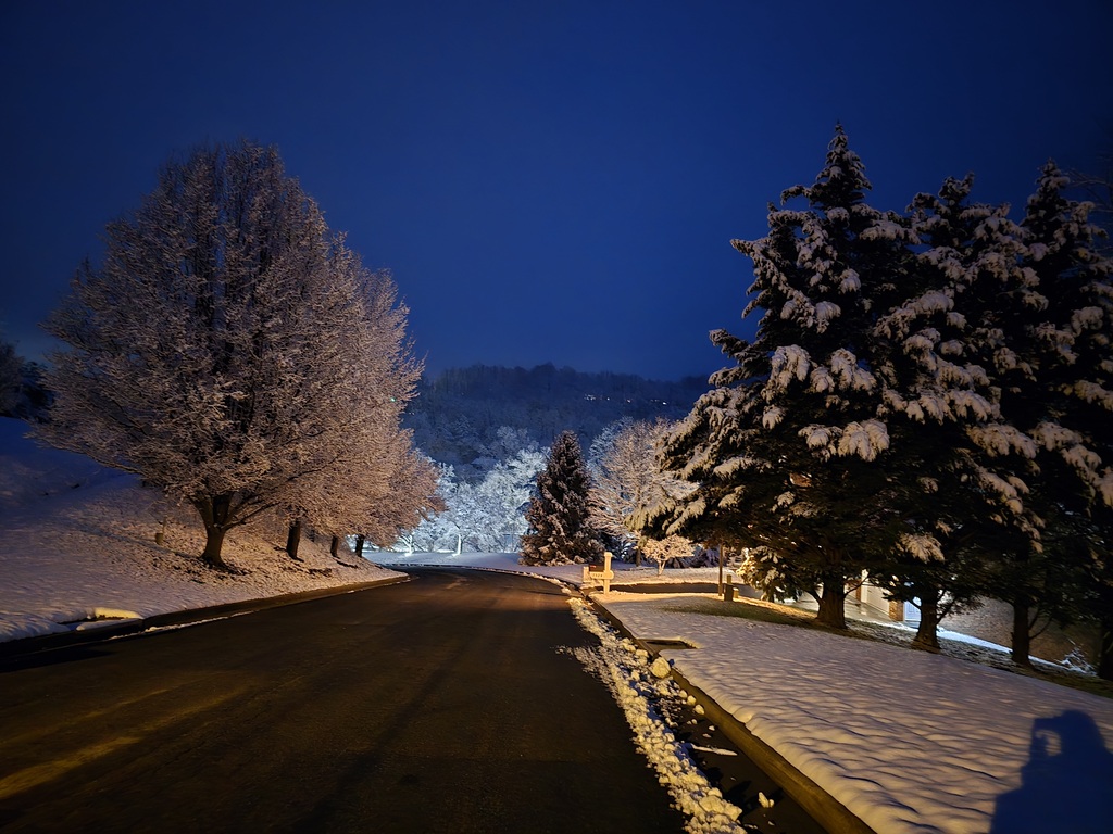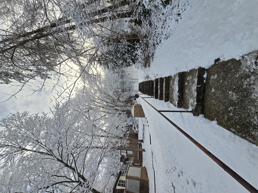Mój samochód nie dał rady pod górkę osiedla w pracy, utknęłam za pierwszym zakrętem. Pracodawca zjechał z góry, także nie musiałam się wdrapywac. Ja dół po pracy zeszłam sama, taka okazja na widoki, trzeba skorzystać. I warto było. Jak w bajkowym świecie, co prawda dekoracje ledwie przebijały światło przez śnieg. Takie wynagrodzenie całodniowe stresu, związanego z jazdą, gęba mi się śmiała z zachwytu, a ręce grabialy bez rękawiczek.