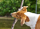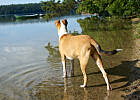 Pan Srelek Morelek pojechał w weekend nad jezioro, ale że jakieś trzy tygodnie temu miał bliskie wskakująco chlupoczące spotkanie z wodą, postanowił tym razem nie ufać mokremu potworowi i zamoczyć w nim tylko jedną łapę oraz spragniony napitku długi ozór Wszelkie patyki obgryzał na sucho, a żaglówki obserwował z prawdziwie pasterskim niepokojem, czy aby na pewno nie przypłyną do brzegu, by podstępnie wepchnąć go do wody Kupa śmiechu z tym Morelkiem. Na koniec wizyty nad jeziorem Morelek nażarł się węgielków z resztek nadbrzeżnego ogniska i potem żadna sraczuszka nie była mu straszna - nawet po połknięciu dwóch kiełbas z ogniska, porcji sernika i plastra kruchego makowczyka - zwędzonych ze stołu za pomocą metrowej szyi i półmetrowego pyska, które każdy przyzwoity owczarek collie mieć powinien