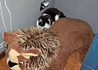 Moja starowinka kocica zawsze miała tak ze 4 typowe dla siebie, ulubione miejscówki do spania.... Z wiekiem coraz bardziej zaskakuje lubością ciasnych kątów i jak na zdjęciu widać, towarzystwem co najmniej odpowiednim......
