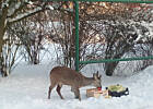 Rudolfa pokazywałam nie raz, a dzisiaj zobaczcie : Pan Sarenka . Trochę niewyraźne , bo robione przez okno. Przychodzi już dawno , dzisiaj skusił się na jabłko , bo Rudolf zostawił pod oknem.