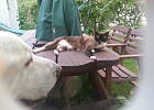 Przyjeżdża do nas regularnie znajoma (powinnam ją już chyba powoli zacząć nazywać przyjacielem rodziny, bo zasługuje na to bez ale). Ma psy - dwa schrony - sucze wielkie a włochate o miętkich sercach i otwartych serduchach, którym krzywdę można by bezkarnie zrobić, a one na to pozwolą. I jeszcze większego owczara (pojawia się od czasu do czasu na fotach z Morelem) - wygląd zbója, a serce jagniątka, "Taka ciapa..." - jak mawia właścicielka. Wiem, że gdyby zaszła potrzeba, wzięłabym tą ferajnę na dożywocie, mimo że liczebnie przekracza granice rozsądku ;)