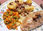 Duszone plastry karkówki z pieczarkami portobello i warzywami + dodatki :-)