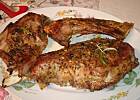 Skóra nacięta na krzyż, nacierasz solą, pieprzem najlepiej biały ale obojętnie, majeranek i rozmaryn. No chłodzisz tam pare godzin lub dobe.