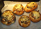 Bułki zapieczone z nadzieniem (indyk pieczony, pieczarki smażone z oregano i bazylią, kukurydza, papryka, ser)