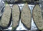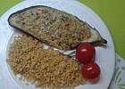 Bakłażan faszerowany fetą i mozzarellą oraz kasza bulgur.