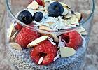 Tak. Nie myślałam, że to może smakować. Gdyby nie statek pewnie nigdy bym nie spróbowała. Zrobiłam dwa pucharki. 8 łyżek chia i 2 miarki po 237 ml mleka migdałowego (może być dowolne). Plus slodzidlo, u mnie był erytrytol w pudrze, dwie łyżki. Ale może być miód czy syrop klonowy, co preferujemy i w ilości pod to. Można zrobić bez słodkiego i polać po wierzchu jakimś sosem, syropem czy miodem. Wymieszałam mikserem, żeby gluty się nie zrobiły. Po godzinie jakiejś, gdy trochę zgęstniało jeszcze raz mikserem. I do pucharków. Pomiędzy warstwami chia są owoce.
