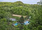Wczoraj pogoda nam trochę pokrzyżowała plany, musieliśmy je trochę pozmieniać. Ale dzień i tak intensywny. Najpierw wyprawa po pamiątki alkoholowe. Potem objazd okolicy krętymi drogami górskim, alternatywa na deszcz. Wyprawa na most skalny wyciągiem, najwolniejszy wyciąg jakim jechałam w życiu. Most jest ogromny. Byliśmy na punkcie widokowym na most, na samym moście i pod mostem. No i wieczorem pływanie kajakami po starej kopalni. Nie wiem czemu myśleliśmy, że to jaskinia. Znaczy mąż mówił tak od początku, na ich zdjęciach wygląda jak jaskinia. No i generalnie to jaskinia zrobiona ludzką ręką. Bo to dawna kopalnia wapienia, którą woda deszczowa zalała. Nie ma połączenia do rzeki, do wielkie akwarium (jak określił przewodnik), zarybione pstrągami. Ryby pływały pod kajakiem z przezroczystym dnem. Niektóre ogromne. Całość oświetlona lampkami led. My mieliśmy kaski z latarkami, ale były wyłączone. Kajaki były podświetlone. Płynelismy w półmroku.