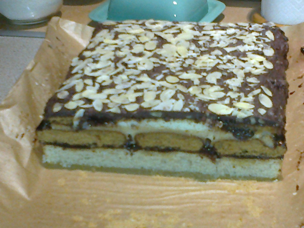 Po ostudzeniu można polać polewą i udekorować migdałami.