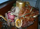 W oleju to dzieło mojego małżonka. Dał wszystkie zioła jakie miał pod ręką , posmarował olejem i sobie czeka w zimnym miejscu. Wszystkie mięsa leżą w garach na zimnych płytkach, nie w lodówce.