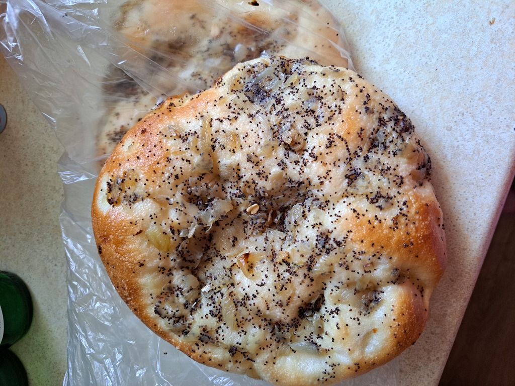 Wyprawa po górach (czytaj na zakupy) była owocna, natargalam dobra, że hoho. Kupiłam sobie bagietke ciabatta, nawet dobra. Oczywiście do tego oliwy smakowe. I miałam obiad. Trochę (większość) zamrożę na zaś. A dziś będzie na śniadanie zapiekanka z owej bułki, z serem pleśniowym i pomidor na to. Jutro zrobię sobie grzanki, na to oliwa, sałata, pomidor z targu i cebula.