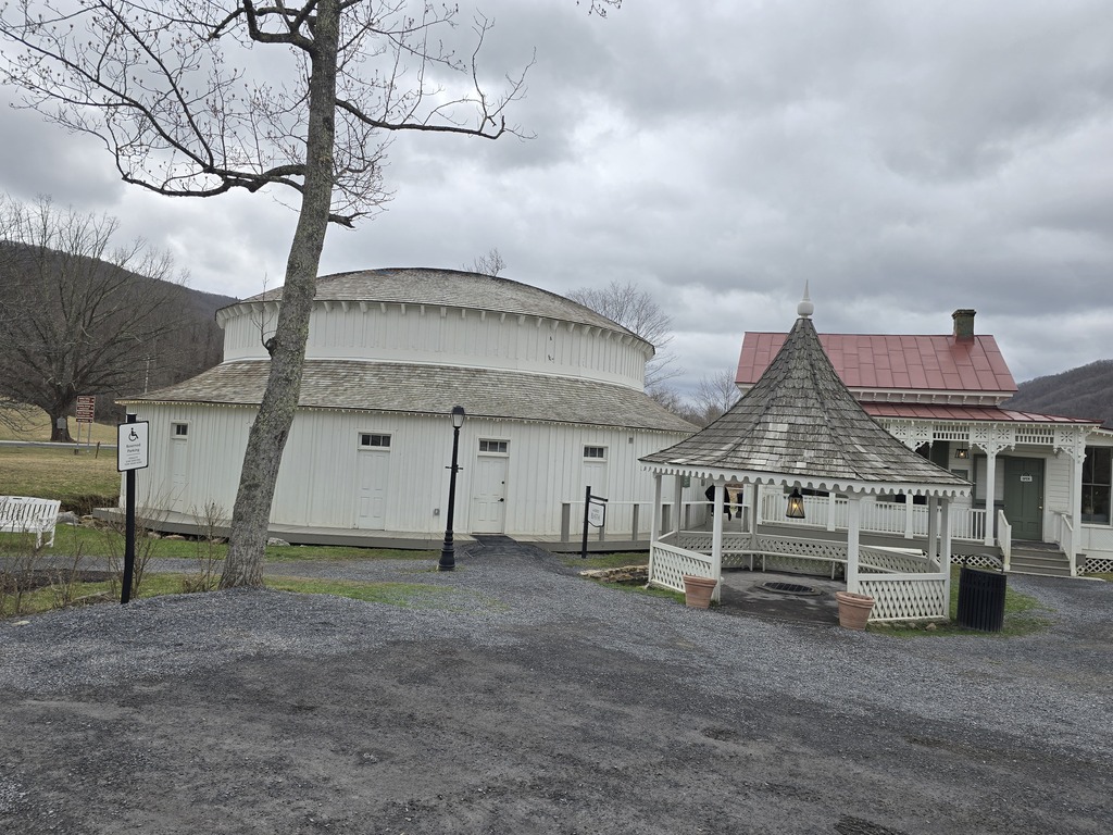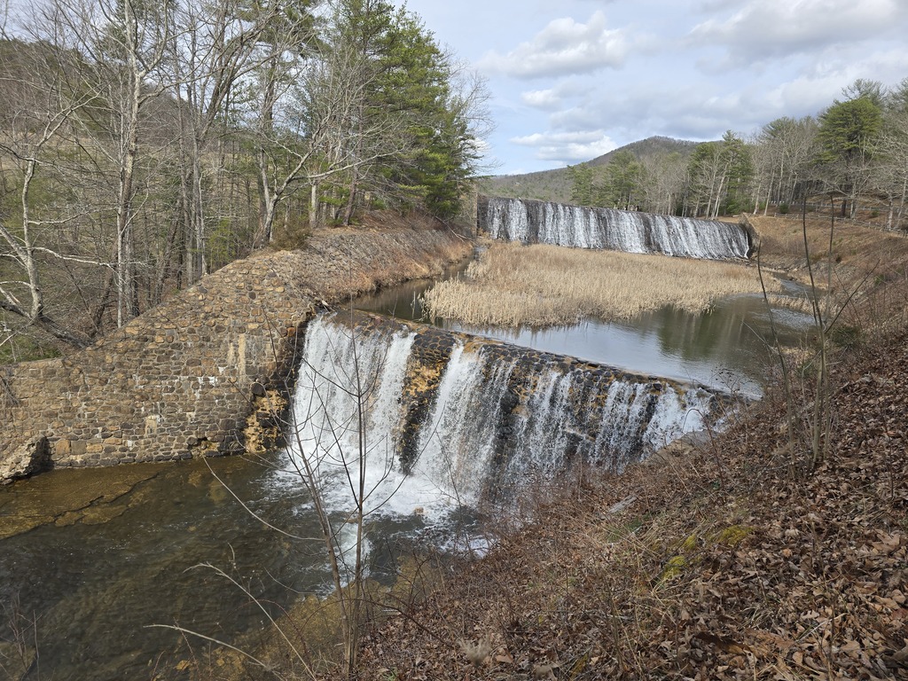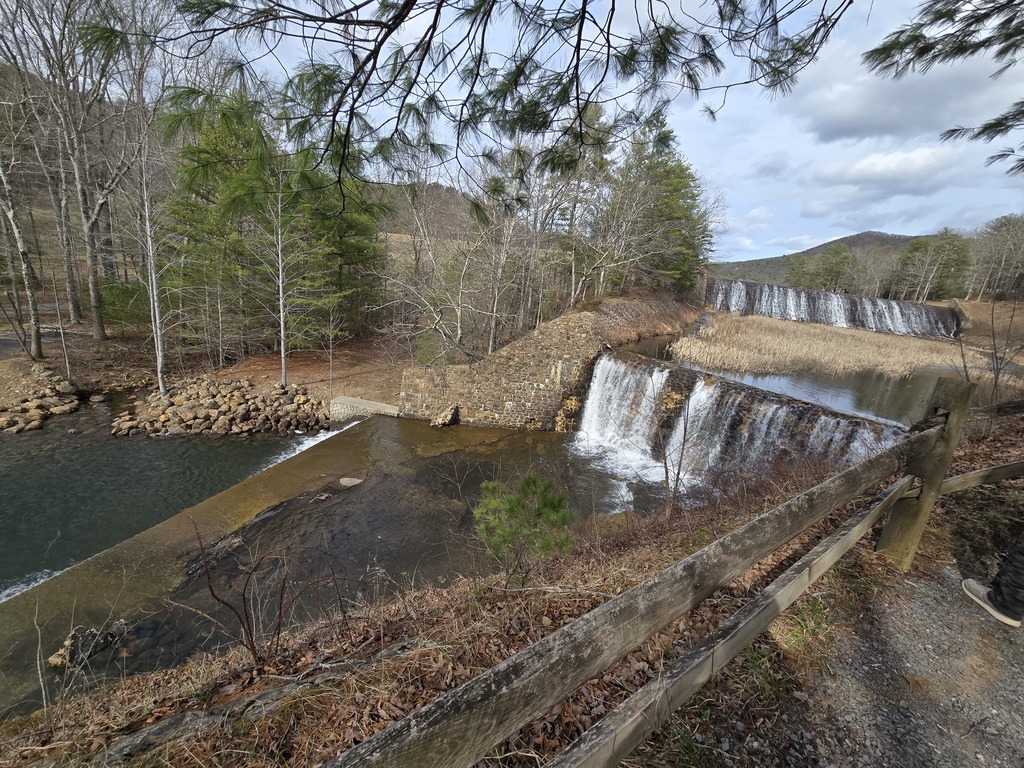 A potem pojechaliśmy do parku stanowego, odkrytego przez przypadek i błąd google maps z powodu braku zasięgu. Nie wiemy, w którym momencie źle pojechaliśmy, w każdym razie google powiedziały raz zawrócić, po czym znowu zasięg się zgubił. Za chwilę się odnalazł, a nam czas się wydłużył o 7 minut. Jako, że nie mieliśmy konkretnych planów, miejsce było urocze, wróciliśmy tą samą drogą. Warto było. Obeszlismy pół jeziora (robiąc oczywiście odległość za całe, bo trzeba było wrócić), bo nie było przejścia przez potok (latem to można zdjąć buty i przejść). Jest okazja, aby wrócić, jest sporo szlaków, w tym jeden do wodospadu. Po drodze widzieliśmy restaurację w tym parku, w necie było menu i, że otwarte. Na miejscu okazało się, że zamknięta od 2022. Wcześniej przez sezon letni był grill, ale pani powiedziała, że w tym roku pod znakiem zapytania. A miejsce aż się prosiło o punkt restauracyjny, przepiękny taras, stoliki i krzesła dalej stoją.