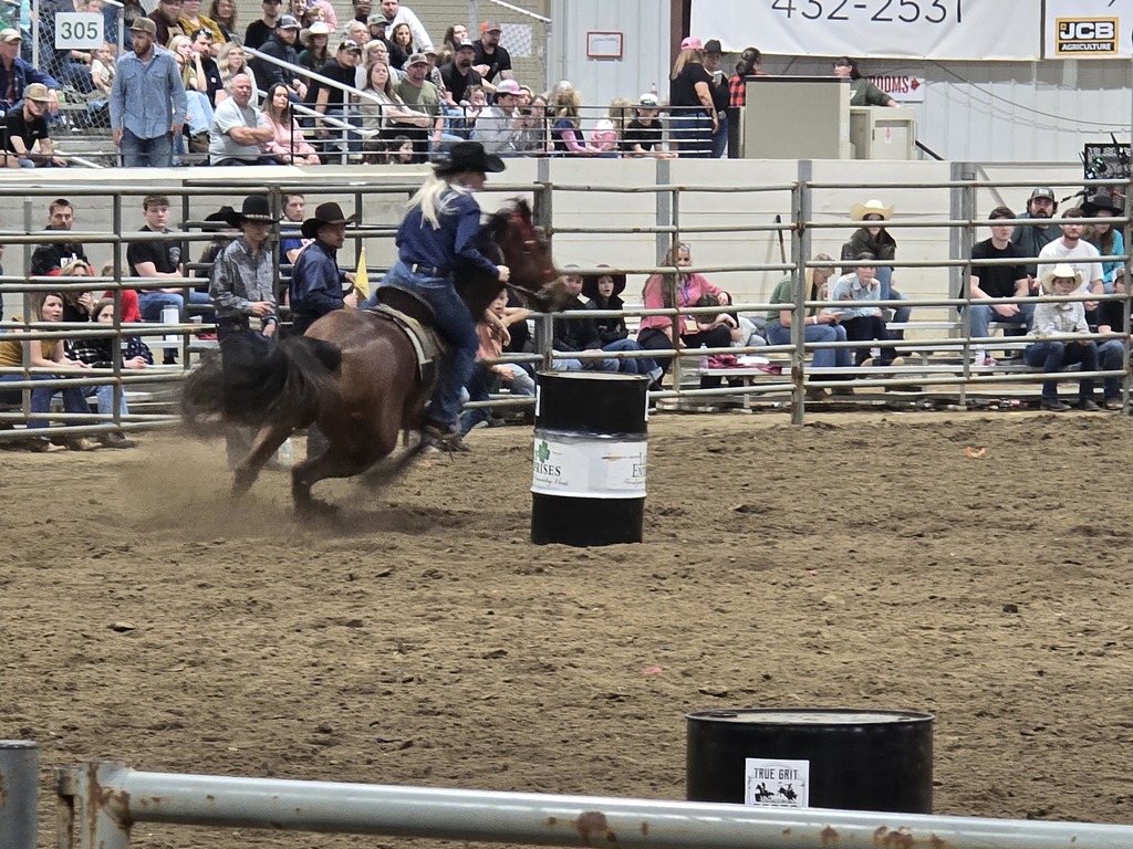 Były zawody dziewczyn na koniach dookoła beczek. Jeden z lepszych czasów miała dziewczynka coś z 8 lat, tak na wygląd.