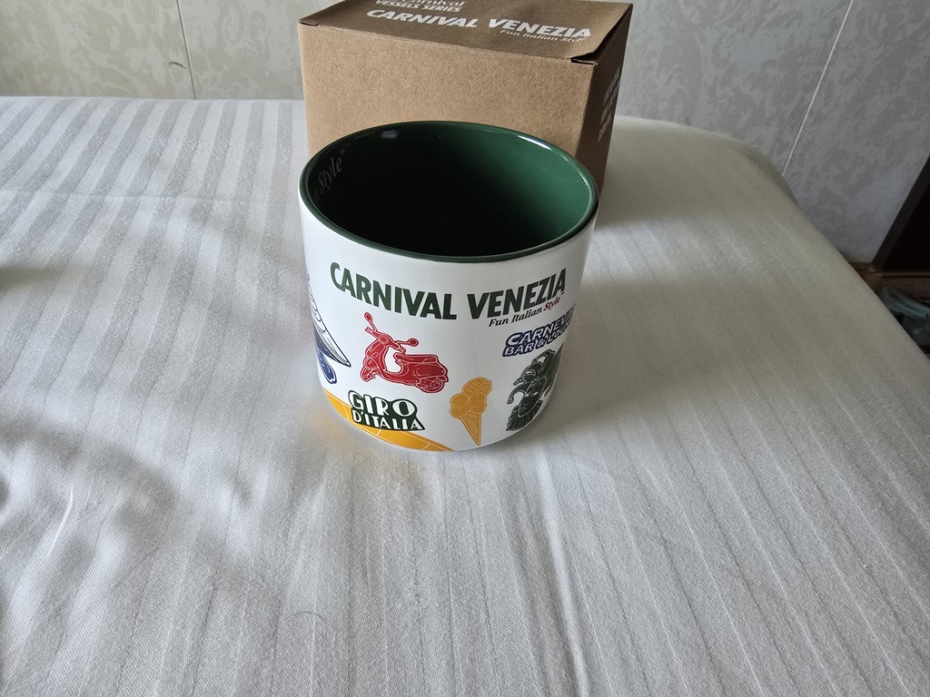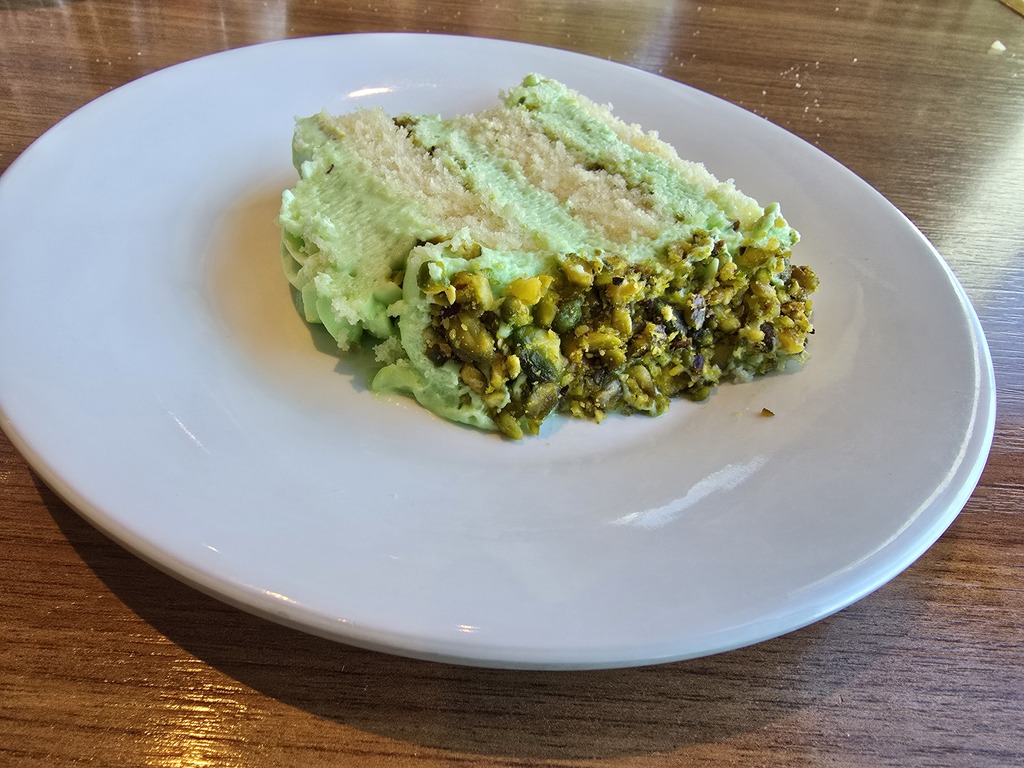 Takie kubki sobie kupiliśmy na pamiątkę, na zdjęciu obie strony, ciasto którego przygotowywanie widzieliśmy w kuchni , nawet nie za słodkie, dobre. Obiad mojego męża, z bufetu.