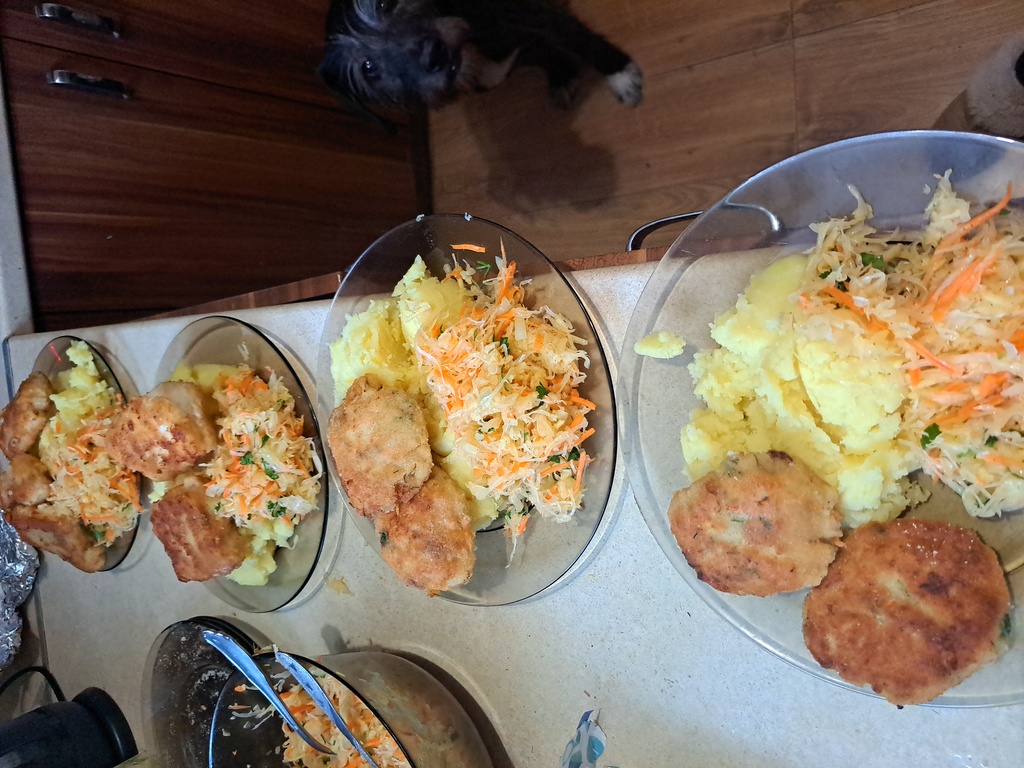 Zaraz zabieram się za obiad. Dziś smażony morszczuk,ziemniaki i surówka z kiszonej kapusty. Ostatnio jadłabym na przemian kapuśniak,bigos i surówki z kiszonej. Tylko o tej porze roku najlepiej mi smakują,zresztą najzdrowsze.