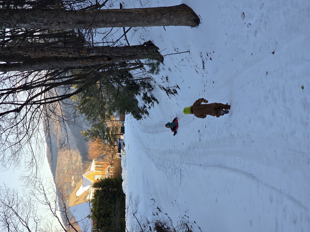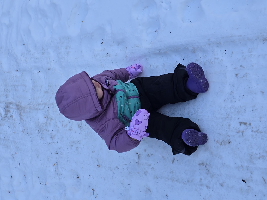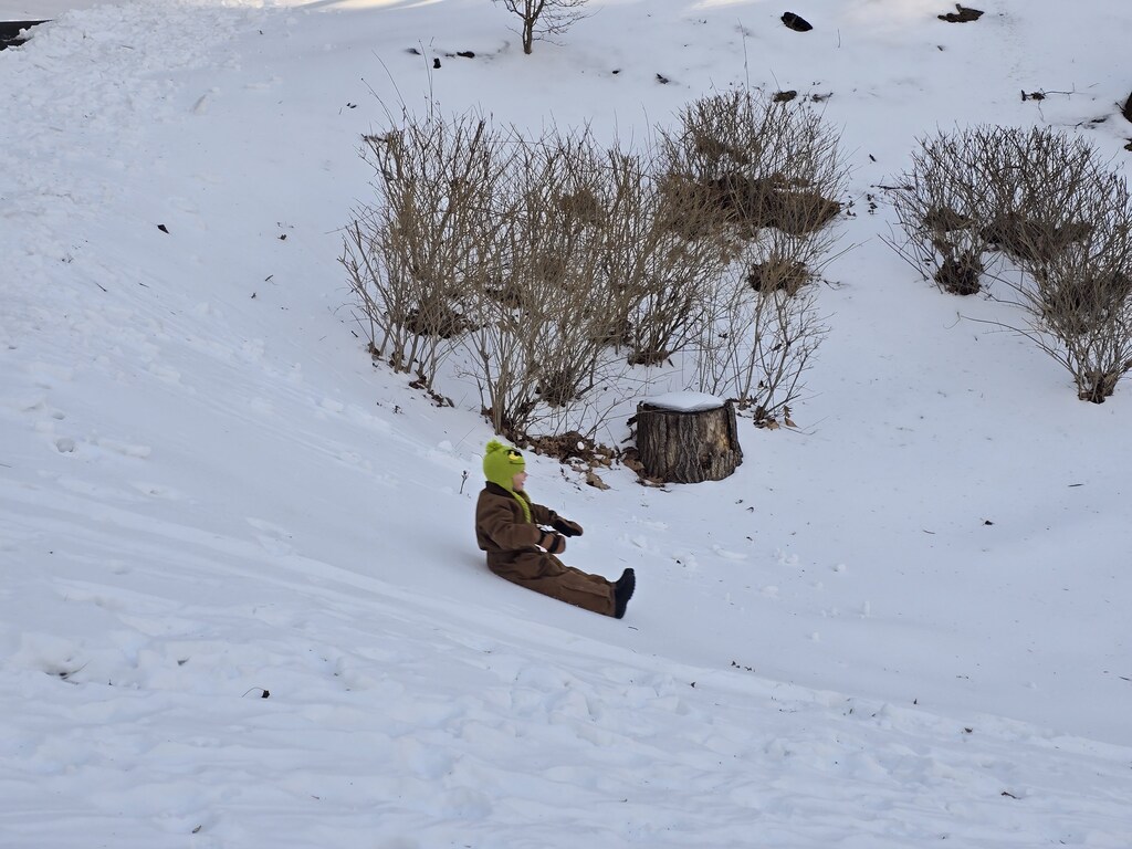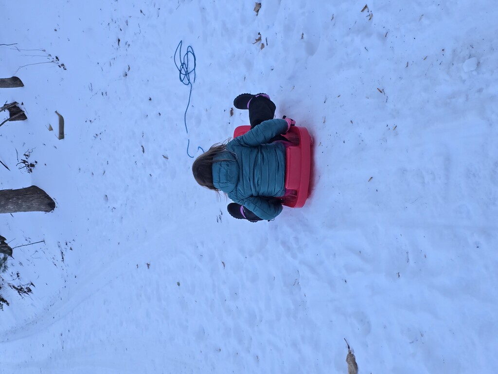 Wczoraj mieliśmy kolejny dzień na zewnątrz, tym razem zjazdy na spodniach. Ale była frajda, nawet Malutkiej się podobało. Ja z nią na kolanach też sobie parę razy zjechałam.